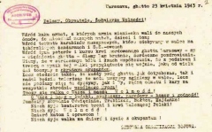 ![]() Nie ludzie, lecz psy okrwawione, i nie żołnierze, lecz kaci przyszli, by śmiercią porazić was, wasze dzieci i żony: gazem w komorach wydusić, wapnem w wagonach wytracić i szydzić z umierających, bezbronnych i przerażonych. Lecz wyście podnieśli kamień, by cisnąć nim w kanoniera, który nastawił działo, by dom wasz zburzyć do szczętu... Synowie Machabeuszów, i wy potraficie umierać, podjąć bez cienia nadziei, walkę we Wrześniu zaczętą. Oto co trzeba wyryć, jak w głazie, w polskiej pamięci: wspólny dom nam zburzono i krew przelana nas brata, łączy nas mur egzekucyj, łączy nas Dachau, Oświęcim, każdy grób bezimienny i każda więzienna krata. Wspólnie zaświeci nam niebo nad zburzoną Warszawą, gdy zakończymy zwycięstwem krwawy nasz trud wieloletni: każdy człowiek otrzyma wolność, kęs chleba i prawo i jedna powstanie rasa, najwyższa: ludzie szlachetni. Władysław Broniewski, "Żydom polskim", 1943 19 kwietnia 1943 roku w getcie warszawskim wybuchło powstanie. Była to odpowiedź Żydów na proces likwidacji getta i nazistowskie prześladowania, a także bardzo ważny elementy antyfaszystowskiego oporu na terenie okupowanej przez III Rzeszę Generalnej Guberni. W powstaniu, w walkach zginęło 7 tys. osób, a 6 tys. zostało spalonych żywcem. Blisko 50 tysięcy osób zagazowano w Treblince. Dużo rolę podczas organizacji i w czasie walk w getcie odgrywała również lewica. Droga do Żydowskiej Organizacji Bojowej W marcu 1942 roku lewicowi syjoniści oraz komuniści tworzą Blok Antyfaszystowski. Wśród czołowych działaczy organizacji znaleźli się m.in. Józef Lewartowski z Polskiej Partii Robotniczej, Mordechaj Anielewicz i Josef Kapłan z Haszomer Hacair, Szachno Sagan z Poalej Syjon Lewicy, Józef Sak ze środowiska syjonistów-socjalistów oraz Icchak Cukierman i jego żona Cywia Lubetkin reprezentujący organizacje Hechaluc i Dror. Na czele jej organizacji bojowej stanął kpt Pinkus Kartin. 15 października 1942 roku Organizacja Bojowa Bloku Antyfaszystowskiego połączyła się z Cukunft, organizacją młodzieżową socjalistycznej partii Bund oraz grupami syjonistycznymi m.in. Akiba i Gordonia utworzyły Żydowską Organizację Bojową. Dowódcą ŻOB został Mordechaj Anielewicz z Haszomer Hacair, a jego zastępcą Izaak Cukierman z Cukunftu. Organizacja otrzymywała broń zarówno od Armii Krajowej, jak i Gwardii Ludowej. Część uzbrojenia pochodziła także od Polskiej Partii Socjalistycznej. Była także uważana za reprezentację Żydów zarówno przez Delegaturę Rządu na Kraj jak i Polską Partię Robotniczą. Politycznym kierownictwem ŻOB był Żydowski Komitet Narodowy (ŻKN) jednoczący partie syjonistyczne i socjalistyczne. Bund, który nie wszedł w skład ŻKN, zgodził się z nim współpracować w ramach Komisji Koordynacyjnej. Żydowska Organizacja Bojowa składała się z 22 grup bojowych wywodzących się z różnych środowisk (Dror, Haszomer Hacair, GL-PPR, Bund, Poalej Syjon Lewica, Poalej Syjon Prawica, Akiba, Gordonia i Hangar Hacyjoni). W czasie powstania w getcie bojownicy ŻOB występowali pod biało-czerwonym sztandarem. Organizacja budowała bunkry w getcie, likwidowała konfidentów i kolaborantów w tym oficerów policji żydowskiej oraz prowadziła akcję propagandową na rzecz zbrojnego oporu. Żydowska Organizacja Bojowa stała na stanowisku wspólnej walki z Polakami przeciwko hitlerowskim okupantom. W odezwie wydanej przez ŻOB czytamy: "Od trzech dni lud Warszawy prowadzi walkę orężną z okupantem niemieckim. Bój ten jest i naszym bojem. Po upływie roku od pełnego chwały oporu w gettach i obozach "pracy", od obrony życia i godności naszej, stoimy dziś wespół z całym Narodem polskim w walce o wolność. Setki młodzieży żydowskiej i bojowników ŻOB (Żydowskiej Organizacji Bojowej) stoją ramię w ramię ze swoimi polskimi towarzyszami na barykadach. Walczącym nasze bojowe pozdrowienie. Wzywamy wszystkich pozostałych jeszcze przy życiu bojowców ŻOB oraz całą zdolną do walki młodzież żydowską do kontynuowania oporu i walki, od której nikomu nie wolno stać z dala. Wstępujcie do szeregów powstańczych. Przez bój do zwycięstwa, do Polski wolnej, niepodległej, silnej i sprawiedliwej." Drugą organizacją walczącą zbrojnie na terenie warszawskiego getta był Żydowski Związek Wojskowy. ŻZW reprezentował prawicowy nurt ruchu syjonistycznego m.in. organizację Betar. Współpracował ze Związkiem Walki Czynnej którego zwierzchność uznawał. Jednak i z tym środowiskiem współpracowała lewica. W grudniu 1942 roku współpracę z ŻZW podjęła Polska Ludowa Akcja Niepodległościowa. PLAN powstał 15 października 1939 roku. Założyli go studenci skupieni wokół czasopisma "Orka na ugorze". Po rozbiciu organizacji przez gestapo grupa ocalałych członków organizacji reaktywuje PLAN. Na czele Polskiej Ludowej Organizacji Niepodległościowej określającej się jako organizacja demokratycznej lewicy staje Cezary Szemley. Grupa krytycznie odnosiła się do działalności Armii Krajowej i nie odrzucała współpracy z komunistami. PLAN organizuje dla Żydowskiej Organizacji Wojskowej przerzut broni, szkolenie żołnierzy, pomaga także przy likwidacji konfidentów i niszczeniu magazynów SS. Organizacja pomogła także w ewakuacji powstańców. Wsparcie lewicy ŻOB i ŻŻW osiągnęły porozumienie o współpracy na mocy którego terytorium getta podzielono na dwa okręgi wojskowe, za każdy z nich odpowiadała inna organizacja. ŻZW przekazał ŻOB część broni - 50 pistoletów i kilkaset granatów. Istotną rolę w żydowskim ruchu oporu odgrywali socjaliści z Bundu. W powstaniu walczyli liderzy partii - Abrasza Blum, Michał Klepfisz i Marek Edelman. Partia nie wchodziła w skład Bloku Antyfaszystowskiego oraz Żydowskiego Komitetu Narodowego, jednak bardzo aktywnie uczestniczyła w działalności Żydowskiej Organizacji Bojowej oraz Rad