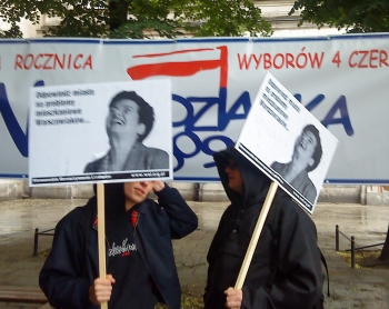 ![]() Obchody współorganizowały władze Warszawy, które lokatorzy oskarżają o prowadzenie antyspołecznej polityki. Pikietujący przypominali, że dziewiętnasty z 21 postulatów NSZZ "Solidarność" w sierpniu 1989 roku dotyczył skrócenia czasu oczekiwania na mieszkania. Lokatorzy czekali na przybycie prezydent Warszawy Hanny Gronkiewicz-Waltz która miała rozpocząć obchody rocznicowe, nie pojawiła się ona jednak. Lokatorzy domagali się między innymi rozpoczęcia budowy wystarczającej liczby mieszkań komunalnych i wstrzymania wyprzedaży budynków razem z mieszkańcami. Jesteśmy tu po to aby przypomnieć jak daleka od 19 postulatu Solidarności jest obecna polityka prowadzona przez ludzi odwołujących się przecież do tamtych tradycji - powiedział Piotr Ciszewski z WSL i LA. Dodał, że wolność nie polega na możliwości wrzucenia głosu do urny ale bezpieczeństwie, gdy człowiek nie musi na przykład obawiać się, że zostanie bezprawnie wyrzucony z domu przez kamienicznika przy biernej postawie policji. Andrzej Smosarski z WSL i LA odniósł się do oficjalnej nazwy obchodów rocznicowych (Niespodzianka 2009 od dawnej kawiarni Niespodzianka w której miejscu się odbywały) i stwierdził, że jest to lokatorska niespodzianka dla samorządowców i polityków biorących udział w imprezie. Jako przykład bezprawia przedstawił przypadek Anny Kalbarczyk - lokatorki uczestniczącej w pikiecie, która w styczniu została bezprawnie wyrzucona z dziećmi z domu przez wynajmującego je właściciela, przy biernej postawie policji nie znającej prawa. Organizatorzy obchodów ze Stowarzyszenia Wolnego Słowa wezwali policję twierdząc, że pikieta lokatorska jest nielegalna i przeszkadza w uroczystościach. Funkcjonariusze ograniczyli się do spisania kilku osób, a pikietujący podzielili się na grupy poniżej 14 osób, tak aby nie wymagano od nich dowodu wcześniejszego zgłoszenia protestu. Reakcje zaproszonych gości były różne. Po zakończeniu protestu z jego uczestnikami rozmawiał Zbigniew Bujak twierdząc, że nie wiedział o sytuacji lokatorów w Warszawie. |