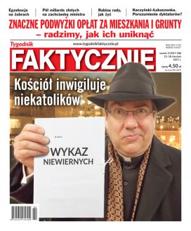 Drugi tegoroczny numer "Tygodnika Faktycznie" przynosi bulwersujący tekst na temat inwigilowania niekatolików przez Kościół rzymskokatolicki w Polsce. Sprawa jest bardzo poważna, bo zbieranie i przechowywanie informacji o ludziach nie mających żadnego związku z Kościołem jest w pełni nielegalne, a jednocześnie powszechne.