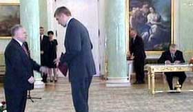 ![]() Urząd wicepremiera i ministra rolnictwa objął Andrzej Lepper - przewodniczący Samoobrony RP. Na stanowisku ministra rolnictwa zastąpił on Krzysztofa Jurgiela. Wicepremierem został również Roman Giertych - prezes Ligi Polskich Rodzin. Objął on również urząd ministra edukacji narodowej, zastępując na tym stanowisku prof. Michała Seweryńskiego. Ten ostatni pozostał jednak w składzie Rady Ministrów - będzie teraz pełnił urząd ministra nauki i szkolnictwa wyższego. Nominacje ministerialne otrzymali także: Anna Kalata, która z rekomendacji Samoobrony RP będzie sprawowała urząd minister pracy i polityki społecznej (zastąpiła na tym stanowisku Krzysztofa Michałkiewicza), Antoni Jaszczak, który z rekomendacji Samoobrony RP będzie pełnił urząd ministra budownictwa oraz Rafał Wiechecki, który z rekomendacji Ligi Polskich Rodzin będzie sprawował urząd ministra gospodarki morskiej i rybołówstwa. Jerzy Polaczek, który dotychczas pełnił urząd ministra transportu i budownictwa, pozostanie w składzie Rady Ministrów na stanowisku ministra transportu. Prezydent RP odwołał także ze składu Rady Ministrów ministra spraw zagranicznych Stefana Mellera, który złożył dymisję niedługo po tym, jak PiS i Samoobrona RP podpisały umowę koalicyjną. Prawdopodobnym następcą Mellera ma być Paweł Zalewski. |