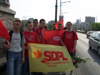 ![]() W happeningu zorganizowanym w miejscu istotnego dla ówczesnej sytuacji politycznej spotkania między Józefem Piłsudskiem a prezydentem Stanisławem Wojciechowskim, wzięło udział około 30 osób z organizacji młodzieżowych SdPl i SLD. Uczestnicy imprezy złożyli wieniec i zapalili znicze ku pamięci ofiar bratobójczych walk. Sprzeciwili się również, nawiązując do historii, pogłębiającemu się rozbiciu i zawłaszczaniu państwa przez antyeuropejską i faszyzującą prawicę, a także zaprotestowali przeciw najnowszym rządowym nominacjom dla Romana Giertycha, Rafała Wiecheckiego i Andrzeja Leppera. |