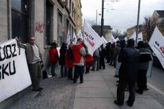 ![]() Protestujemy przed siedzibą komornika nie dlatego, że sądzimy że jest on uosobieniem zła. Jednak egzeukacja komornicza, której dokonał jest ostatnim ogniwem systemu, w którym zdrowie i życie człowieka stało się towarem. Prawo, które zezwala na egzekucję komorniczą szpitala sprawia, że interesy firm handlujących długami są ważniejsze, niż zdrowie i życie pacjentów, a firmy windykacyjne żadające zwrotu wierzytelności zachowują się jak zwykłe hieny, które nie widzą różnicy między pietruszką czy Coca Colą, a kosztami leczenia - powiedziała Ewa Groszewska, jedna z organizatorek akcji. Protestujący skandowali też hasła: "Zdrowie jest prawem, nie towarem", "Ręce precz od szpitali" czy "Chcemy się leczyć, nie umierać!". Na koniec organizatorzy zaprosili komornika do zejścia na dół i wytłumaczenia się ze swoich decyzji. Ten jednak nie odpowiedział na apel. 2 lutego wrocławscy przedstawiciele WZZ "Sierpień`80" złożyli do prokuratury zawiadomienie o możliwości popełnienia przestępstwa przez tegoż komornika. Dziś prokurator poinformował, że sprawą się zajmie. Za przykładem związkowców z "Sierpnia`80" poszli rodzice dzieci hospitalizowanych we wrocławskim Akademickim Szpitalu Klinicznym i również złożyli odpowiednie wnioski do prokuratury. |