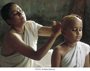 Dominuje jednak sytuacja społecznego upośledzenia kobiety. I jest to niestety sytuacja bohaterek filmu. Święte pisma sprzed dwóch tysięcy lat skazały małą Chuyię na ekspulsję. Jest nieczysta, prawa do własnego życia seksualnego nigdy już miała nie będzie, podobnie jak do spożywania wielu pokarmów, w tym jednego z najsłynniejszych indyjskich smakołyków, ladoo. Powinna też uważać w kontaktach z ludźmi, bo jako wdowa może skalać ich czystość rytualną. Goli się jej włosy, ubiera na biało i zamyka z innymi kobietami w tej samej sytuacji, choć bardzo różnym wieku, w Domu Wdów. Powieść Tagore’a „Chokher Bali”, na podstawie której powstał niezły bengalski film z Aishwaryą Rai (tą, której metrowe rzęsy reklamują obecnie l’Oréala), pokazuje, jak straszna sytuacja wdowy może być dla dorosłej kobiety. A bohaterka Mehty ma dopiero 7 lat.