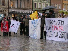 Kilkadziesiąt osób manifestowało dzisiaj na wrocławskim Rynku w czwartą rocznicę wybuchu wojny w Iraku. Organizatorem protestu był Wolny Związek Zawodowy "Sierpień 80".