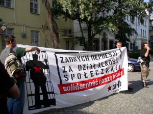 ![]() W pikiecie, którą zorganizowało stowarzyszenie Zielony Kolektyw, wzięli również udział działacze Warszawskiej Grupy Anarchistycznej i Czerwonego Kolektywu-Lewicowej Alternatywy. Działacze CK-LA rozwinęli transparent "Żadnych represji za działalność społeczną. Solidarność naszą bronią" Jesteśmy tu, pod instytutem będącym placówką kulturalną sponsorowaną przez niemiecki rząd, aby pokazać, że nie podoba nam sie to co dzieje się w Niemczech, gdzie zakazuje się demonstracji pod pozorem "zagrożenia terrorystycznego - powiedział przedstawiciel Zielonego Kolektywu. Dodał, że dziś terrorystami nazywa się ludzi, którzy chcą wyrażać swoje niezadowolenia, a prawo do demonstrowania jest jedną z podstawowych wolności obywatelskich. Przypomniał histerię panującą w mediach oraz wśród rządzących podczas antyszczytu Europejskiego Forum Ekonomicznego w roku 2004 w Warszawie i, że wówczas demonstracje okazały się całkowicie pokojowe. Jakub Grzegorczyk z CK-LA przypomniał, że w Niemczech wobec przeciwników G8 stosuje się ustawy antyterrorystyczne, które nie były stosowane od końca lat 60. Dodał, że ograniczenie prawa do zgromadzeń i wyrażania własnego zdania ma miejsce w wielu krajach uważających się za demokratyczne. Dodał, że to co budzi oburzenie w przypadku krajów autorytarnych często jest wprowadzane w państwach "demokratycznych" w bardziej zawoalowany sposób. |