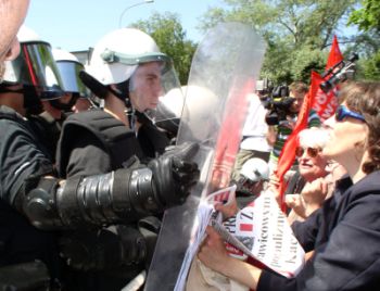 ![]() Idioci z bezpieki? Oficjalnie wszystkie działania były podyktowane względami bezpieczeństwa. Główne media podsycały atmosferę mówiąc o rzeszach demonstrantów, które miałyby przyjechać prosto z antyszczytu G8, który odbywał się dwa dni wcześniej w Niemczech. Relacjonowały przygotowania do gospodarskiej wizyty prezydenta Busha niczym wstęp do sensacyjnych i przełomowych wydarzeń, które wymagają pełnej mobilizacji bezpieki wszelkiej maści. Pierwszym aktem było odcięcie od świata tysięcy mieszkańców Helu. Od rana 8 czerwca musieli oni, chcąc wyjechać z półwyspu przechodzić drobiazgowe policyjne kontrole na drogach. Później dotarcie do miasteczka samochodem stało się w ogóle niemożliwe, bo na jedynej drodze już ponad kilometr od rządowego ośrodka, gdzie miał gościć Wielki Brat zza oceanu stanęła blokada z armatką wodną i samochodem pancernym wyposażonym w specjalny "pług" do rozganiania demonstrantów. Po godzinie 10.00 zatrzymano również pociągi, nie dając oczywiście wcześniej żadnej oficjalnej informacji. Lokalni mieszkańcy i turyści zostali jedynie poinformowani, że "mogą występować trudności z komunikacją". Nie spodziewali się zapewne odcięcia od świata. Co ciekawe nakaz zatrzymania pociągów miało wydać w bardzo niejasnych okolicznościach Polskim Kolejom Państwowym Biuro Ochrony Rządu. Nie wiadomo również na jakiej podstawie prawnej to zrobiło. Powstaje pytanie – czy polska bezpieka jest naprawdę na tyle głupia, aby nie wiedzieć jaka będzie skala protestu? Ponieważ przedstawiciele różnych organizacji lewicowych byli już wzywani przez ABW, wiemy, że odpowiednie służby mają rozeznanie w środowisku, a bardzo możliwe, że również kilku informatorów. Niemożliwe aby nie wiedziały iż przeciwników Busha na Helu będzie kilkuset, czyli o wiele mniej niż przewidzianych do ochrony policjantów. Mało prawdopodobne jest również aby nie były w stanie zapewnić gościowi bezpieczeństwa bez zamykania linii kolejowej i jedynej drogi na Hel. Następny akt tej policyjnej farsy nastąpił bezpośrednio przed i w trakcie demonstracji. Przebywający na plaży przeciwnicy Busha, w liczbie kilkudziesięciu osób, byli najpierw obserwowani z policyjnej motorówki, a później przez straż graniczną. Funkcjonariusze straży wjechali nawet na plażę na motorach, chwaląc się swoimi zabawkami niczym dresiarze pod dyskoteką. Podczas samej demonstracji, która była legalna nagle pojawiło się kilkudziesięciu policjantów w pełnym rynsztunku, próbując uniemożliwić zebranym przemarsz, co doprowadziło do przepychanki. Po raz kolejny okazało się, że przeciwko kilkuset pokojowym demonstrantom trzeba skierować funkcjonariuszy z miotaczami gazu pieprzowego, a nawet bronią gładkolufową. Odpowiedzialny za ten cyrk oficer był oczywiście nieobecny, zapewne dlatego żeby w wypadku poważniejszych zajść po stronie policji nie było odpowiedzialnego. Później gdy się pojawił odmówł nie tylko podania nazwiska i numeru służbowego, ale nawet stopnia, bo jak wiadomo wystarczy założyć mundur, aby być ponad prawem. Od początku między demonstrantami kręciło się też kilku tajniaków, co było akcentem komicznym, ponieważ byli oni łatwo rozpoznawalni, odróżniając się wyglądem zarówno od przyjezdnych demonstrantów, jak i zebranych gapiów. Wszyscy sie boją, wszyscy siedzą cicho? W całej sytuacji ciekawy jest też fakt, że wszystkie te jawnie prowokacyjne działania nie wywołały sprzeciwu. Przybyły na miejsce burmistrz Jastarni, który wydał zgodę na demonstrację w obliczu policji trząsł się niemal ze strachu. Bełkotał również na początku cos o tym, że wprawdzie zgodę wydał, ale i tak decyduje policja. Organizatorzy protestu musieli stoczyć z nim prawdziwy bój, aby w końcu przyznał, że policja przekracza swoje uprawnienia i wyegzekwował swoją wcześniejszą decyzję. Powstaje pytanie, po co w ogóle umawiać się z takim przedstawicielem władzy lokalnej, jeśli weźmie on nogi za pas jak tylko policja tupnie nogą. PKP też jakoś nie podniosły szumu, że nagle z dnia na dzień, bez wprowadzenia stanu nadzwyczajnego zarządzanie rozkładem jazdy przejął BOR. Wody w usta nabrali dyżurni obrońcy praw człowieka, którym nadmierna mobilizacja sił bezpieczeństwa jakby zupełnie nie przeszkadzała. Wszyscy zdają się potwierdzać ogólny konsensus co do tego, że jeśli Bush przebywa w Polsce to można nieco nagiąć prawo aby czuł się bardziej komfortowo. Również ci, którzy na co dzień najgłośniej oburzają się na marnotrawstwo środków publicznych, czyli przedstawiciele mediów siedzą cicho. "Fakt", który uważa wykorzystywanie rządowych samochodów do prywatnych celów za szczyt marnotrawstwa i gromi polityków za szastanie kasą, nie widzi nic złego w wydawaniu grubych milionów na to aby prezydenci Polski i USA mogli sobie przez kilkadziesiąt minut bełkotać na wspólnym spotkaniu. Więcej, hipokryci z tego szmatławca zamieścili przed wizytą wielki tytuł "Witaj przyjacielu". Dziennikarze nie zauważyli nawet nic niestosownego w tym, że nie mieli nawet okazji zadać pytania "szacownemu gościowi". Jako przedstawiciele mediów z kolonii mogli jedynie siedzieć na briefingu i słuchać garści ogólników o "partnerstwie". Widać więc, że gdy rozmawiać nie chce rodzimy polityk staje się wrogiem demokracji, bufonem itp. G.W. Bush jest jednak dla mediów głównego nurtu niczym przywódca wolnego świata i światło ludzkości. Wolno mu w związku z tym więcej. Witamy w państwie policyjnym? Skoro mobilizacja sił bezpieczeństwa nie miała tak na prawdę na celu powstrzymania agresywnych demonstrantów, to czemu miała służyć? Otóż była to kolejna demonstracja siły. Działania takie są prowadzone regularnie przy okazji wszystkich większych wydarzeń, wiążących się z protestami. Miały miejsce już za czasó