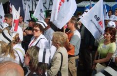 ![]() Przy głośnym aplauzie pielęgniarek Ziętek oświadczył, że nie ma i nie będzie zgody na prywatyzację służby zdrowia, bo obecni na miejscu związkowcy dobrze wiedzą, że wszelkie prywatyzacje zawsze kończą się katastrofalnie dla ludzi pracy. Oświadczył również, że nie ma zgody na to, aby ludzi biednych traktowano w służbie zdrowia jak obywateli drugiej kategorii i że nie do przyjęcia jest podział tej służby na dwie – jedną świadczącą bogatym opiekę zdrowotną na najwyższym poziomie, a drugą świadczącą biednym opiekę na najniższym poziomie. Ziętek przekazał wyrazy poparcia dla walki polskich pielęgniarek i Ogólnopolskiego Związku Zawodowego Pielęgniarek i Położnych od francuskiej Federacji Związkowej Solidarnych – Jednościowych – Demokratycznych Pracowników Służby Zdrowia i Pracowników Socjalnych (SUD Santé-Sociaux) i powiadomił, że planuje ona wysłanie do Warszawy swoich przedstawicieli. Powiadomił również, że w Wielkopolsce zaprzyjaźnione z WZZ "Sierpień 80" środowiska rolników zaczęły zbiórki żywności dla protestujących pielęgniarek. Na stronie internetowej "Trybuny Robotniczej" można podpisać się pod listą popierającą żądania pielęgniarek i położnych: www.trybuna-robotnicza.pl/index.php?option=com_akobook&Itemid=176 |