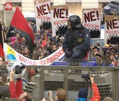 ![]() Neonazistom zabroniono przemarszu przez historyczną żydowską dzielnicę miasta. Gdy grupy prawicowych ekstremistów próbowały się tam dostać doszło do starć z antyfaszystami, których zgromadziło się około tysiąca. Antyfaszyści starli się także z policją, która otoczyła grupę 38 anarchistów w jednej z ulic. Zatrzymano co najmniej 10 osób. |
