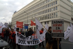 ![]() Uczestnicy przemarszu skandowali m.in. hasła: "Rząd na front, jedzenie zamiast bomb", "Bez tarczy, bez wojen, jesteśmy za pokojem", "Żadnej tarczy bez referendum", "USA - imperium zła", "Wolny Irak, wolna Palestyna, świat bez Busha i Putina", "Polska wolna od tarczycy", "Polskie wojska won z Iraku" oraz "Wojna klasowa, nie narodowa". Protestujący nieśli transparenty z napisami: "Rząd na front", "Nie dla baz USA", "Stop okupacji Iraku", "Chcemy chleba a nie tarczy". W proteście wzięli udział członkowie m.in.: Polskiej Partii Pracy, Wolnego Związku Zawodowego "Sierpień 80", Młodych Socjalistów, Unii Pracy, Nowej Lewicy, Zielonych 2004, RACJI Polskiej Lewicy, Pracowniczej Demokracji, Lewicowej Alternatywy, Federacji Anarchistycznej, Ogólnopolskiego Związku Zawodowego Inicjatywa Pracownicza, Komunistycznej Partii Polski, Stowarzyszenie Młoda Socjaldemokracja, Federacji Młodych Socjaldemokratów, Stowarzyszenie "Lepszy Świat", Ogólnopolskiego Komitetu Antywojennego, Polskiej Partii Socjalistycznej, Organizacji Młodzieżowej Lewicy Bez Cenzury, Spartakusowej Grupy Polski i Związku Słowiańskiego. |