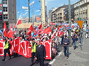![]() Podczas wiecu pod siedzibą OPZZ przemawiali m.in. przewodniczący OPZZ Jan Guz, przewodniczący ZNP Sławomir Broniarz, przewodniczący SLD Wojciech Olejniczak i wiceprzewodniczący SdPl Michał Syska. Wszyscy mówcy w swoich wystąpieniach podkreślili konieczność obrony Kodeksu Pracy przed szkodliwymi dla pracowników propozycjami jego zmian oraz podkreślali konieczność skupienia uwagi lewicy na obronie praw pracowniczych. Wojciech Olejniczak apelował również o jedność wszystkich sił lewicy oraz pozdrowił uczestników wszystkich pochodów odbywających się w Warszawie i w całej Polsce. Z kolei Michał Syska zwrócił uwagę, że 1 maja odbywają się wybory burmistrza Londynu i apelował do uczestników pochodu, aby ci zachęcili członków swoich rodzin oraz znajomych przebywających w Londynie do głosowania na kandydata lewicy Kena Livingstone’a. Wiceprzewodniczący OPZZ Andrzej Radzikowski zwrócił uwagę na skandaliczną – jego zdaniem – decyzję władz miasta, które uniemożliwiły uczestnikom pochodu przejście Nowym Światem. Na ulicy Świętokrzyskiej manifestanci spotkali się z kilkuosobową pikietą Młodych Socjalistów. Uczestnicy pikiety skandowali "Powiedz nie, burżujom z SLD" oraz "Czerwoni magnaci, lud Wam odpłaci". Gdy pochód OPZZ przechodził przez plac Trzech Krzyży spotkał się z demonstracją organizowaną przez środowiska anarchistyczne i Zielonych. "Sprzedaliście kodeks pracy!" skandowali uczestnicy tego zgromadzenia pod adresem działaczy OPZZ i SLD. Uczestnicy pochodu upominali się o: godne wynagrodzenia dla pracowników, wysokie świadczenia socjalne oraz prawa emerytów, rencistów i osób niepełnosprawnych. |