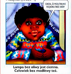 Obrazek przedstawiający smutne, czarnoskóre dziecko, opatrzony komentarzami "Szkoda, że modlitwa nie rozjaśnia skóry" oraz "Lampa bez oliwy jest ciemna. Człowiek bez modlitwy też" był dołączony do jednego z zeszłorocznych numerów "Małego Gościa Niedzielnego". Rasistowskie treści ulotki spotkały się z reakcją Stowarzyszenia Młoda Socjaldemokracja. Zarząd SMS skierował w grudniu do prokuratury zawiadomienie o popełnieniu przestępstwa znieważenia grupy ludności z powodu przynależności rasowej (art. 257 kodeksu karnego).