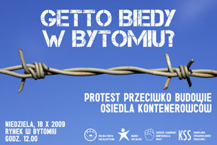 ![]() O postawieniu w dzielnicy Szombierki docelowo 90 kontenerów zdecydował blisko rok temu prezydent Bytomia, Piotr Koj z Platformy Obywatelskiej. W kontenerach mają zamieszkać osoby, które nie są w stanie opłacić czynszu i grozi im eksmisja. Decyzja o umieszczaniu osób w kontenerach, mających służyć im za mieszkania, to pogwałcenie elementarnej ludzkiej godności - powiedział koordynator akcji Mateusz Mirys z PPS. Pomysł prezydenta Koja skończy się tak naprawdę powstaniem w Bytomiu getta. To prosta droga do nawarstwiania, a nie rozwiązywania problemów społecznych - dodaje. Przeciwko idei "osiedla kontenerowców" protestują również od początku mieszkańcy Szombierek, władze miasta zignorowały jednak ich głos. Pomysł skrytykowali także m.in. prezydent Rudy Śląskiej Andrzej Stania oraz urbanista i autor książki "Miasto jako idea polityczna" Krzysztof Nawratek. Negatywną opinię dotyczącą lokalizacji osiedla wydał Wojewódzki Urząd Ochrony Zabytków, nie jest ona jednak wiążąca dla władz miasta. |
