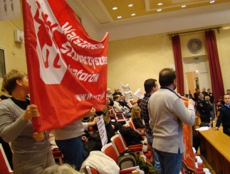 ![]() Protest był skierowany przeciwko sposobowi prowadzenia konsultacji społecznych przez władze miasta. Lokatorzy, pomimo upływu ustawowych terminów wciąż nie otrzymali odpowiedzi na pisma skierowane do przewodniczącej rady oraz wiceprezydenta miasta Andrzeja Jakubiaka. Po tym gdy przewodnicząca Ewa Malinowska-Grupińska (PO) odmówiła odpowiedzi na pytanie dlaczego pisma w sprawie kosztów zarządzania przez miasto nieruchomościami oraz minimów dochodowych uprawniających do starania się o lokale komunalne, pozostają bez odzewu, obecni na sali lokatorzy włączyli własne nagłośnienie i zaczęli skandować "Lokatorzy to nie towar!". Przypomnieli, że problemy mieszkaniowe są przez władze Warszawy ignorowane. Przewodnicząca rady wezwała na sale obrad dodatkowe siły Straży Miejskiej. Nie doszło jednak do interwencji. Lokatorzy opuścili salę zapowiadając powtórzenie akcji na większą skale jeśli władze miasta nie podejmą dialogu. Przedstawiciele lokatorów mają w najbliższym czasie spotkać się z reprezentantami klubów radnych Rady Warszawy. |