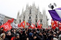 ![]() Na ulice Rzymu, Turynu, Mediolanu, Padwy oraz mniejszych miast, gdzie znajdują się fabryki koncernu wyszli robotnicy. W niektórych miejscach do protestujących przyłączyła się młodzież. Protestu nie poparła jednak oficjalnie nowa sekretarz generalna federacji związkowej CGIL, do której należy FIOM, Susanna Camusso. Zdaniem związkowców porozumienie, podpisane przez pozostałe związki zawodowe w Fiacie, a przewidujące m.in. ograniczenie prawa do dzikiego strajku, walkę z absencją i wzrost obowiązkowych godzin nadliczbowych, łamie prawa pracownicze. Dzisiaj fabryki zatrzymały produkcje ponieważ robotnicy nie chcą aby plan Marchionne rozszerzył się na inne zakłady, chcą za to bronić zatrudnienia z zachowaniem praw pracowniczych i godności osobistej - stwierdził sekretarz generalny FIOM podczas manifestacji w Mediolanie. |