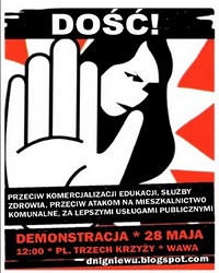 W dniach 27-28 maja w Warszawie dojdzie do protestów w ramach "Dni Gniewu Społecznego". Pierwszego dnia organizatorzy planują kontr-wydarzenia, związane ze spotkaniem prezydentów Europy Środkowej, w którym uczestniczyć ma też prezydent USA Barack Obama; drugiego zaś - demonstrację na na Placu Trzech Krzyży o godz. 12:00.