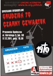 ![]() Dyskusja będzie dotyczyła przyczyn robotniczego sprzeciwu i jego głównych postulatów Czy Grudzień 1970 to przykład oddolnej organizacji klasy pracującej oraz antyrobotniczego charakteru "ludowego" państwa? Jak przebiegały wydarzenia grudnia 1970 roku? Jak Grudzień 1970 był i jest wykorzystywany do celów politycznych przez rządzące elity? Na te i inne pytania postaramy się odpowiedzieć podczas dyskusji. Po dyskusji odbędzie się pokaz filmu "Czarny czwartek. Janek Wiśniewski padł" opowiadającego o wydarzeniach Grudnia 1970 z perspektywy losów zwykłych ludzi. Patronat medialny nad KDLA objęły: portal Lewica.pl, "Przegląd Anarchistyczny" oraz "Le Monde Diplomatique - edycja polska". Spotkanie i pokaz filmu odbędzie się 17 grudnia, o godz. 16.30 w Pracowni Społecznej (Warszawa, ul. Górskiego 3 lok. 59 kl. VI) Więcej informacji na stronie KDLA. |
