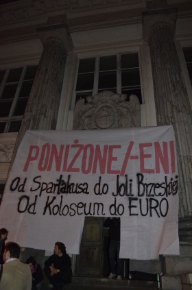 W ramach warszawskiej nocy muzeów, w nocy z 19 na 20 maja skłotersi z Kolektywu Syrena zorganizowali wystawę pod tytułem "Poniżone/-eni. Od Spartakusa do Joli Brzeskiej, od Koloseum do EURO"