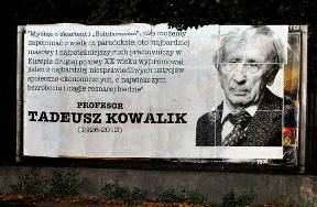 ![]() Aktywiści w kilku miastach Polski, m.in. w Warszawie (na zdjęciu), Łodzi i Wrocławiu, rozwiesili w związku ze śmiercią Profesora billboardy z cytatami z jego prac i wypowiedzi publicznych. Tadeusz Kalinowski |