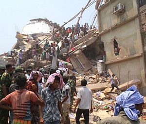 24 kwietnia zawalił się ośmiopiętrowy budynek Rana Plaza, w którym mieściło się pięć fabryk ubrań. Zginęło co najmniej 590 osób, rannych zostało ponad tysiąc osób. Wypadek zwrócił uwagę na problem bezpieczeństwa pracowników zatrudnianych w bardzo złych warunkach. Był to najgorszy wypadek industrialny w historii Bangladeszu i nastąpił zaledwie kilka miesięcy po tym jak w dwóch pożarach fabryk odzieżowych zginęło ponad 220 pracowników. Bangladesz jest drugim największym eksporterem ubrań na świecie, a właściciele fabryk starają się obniżać koszty produkcji, ignorując zasady bezpieczeństwa i higieny pracy.