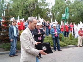 Na zdjęciu wiec przed kopalnią "Szczygłowice" w Knurowie w 2007r.; fot. Waldemar Chamala