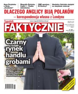 ![]() W numerze także o bezdrożach ideowych i politycznych, na jakie trafił związek zawodowy „Solidarność”, oraz o działaniach i dylematach partii Razem (wywiad). Tygodnik porusza również bulwersującą sprawę nielegalnych ekshumacji oraz handlu grobami na jednym z warszawskich cmentarzy kościelnych. Dział historyczny to m.in. smutne dzieje Władysława Warneńczyka, którego posłuszeństwo Kościołowi doprowadziło do politycznej i osobistej katastrofy. Tygodnik angażuje się także w próbę wyjaśnienia, na ile przedwojenny ONR był agenturą III Rzeszy. TF publikuje także korespondencję własną z Wielkiej Brytanii na temat rosnącej nagonki na cudzoziemców, fali rasizmu i zagubionych polskich emigrantach. W dziale światopoglądowym TF pisze o medialnych przyczynach popularności papieża Franciszka oraz problemami kościelnych ideologów w zaakceptowaniu starań o prawa zwierząt. |