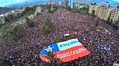 Od kilku tygodni w kraju trwają burzliwe protesty i zamieszki wymierzone w neoliberalną politykę władz. Mające początkowo czysto ekonomiczny wydźwięk protesty, przekształciły się w masowy ruch antysystemowy. Wielu komentatorów mówi o powstaniu. Pomimo pewnych, mało znaczących ustępstw ze strony rządu, w społeczeństwie trwa napięcie i radykalne nastroje narastają. Bezpośrednią iskrą, która rozpaliła społeczne niezadowolenie była decyzja prawicowego rządu Sebastiána Piñery o podniesieniu cen biletów na transport publiczny. Rząd zdecydował się na to ignorując głosy sprzeciwu ze strony organizacji pozarządowych i związków zawodowych.