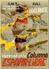![]() Nadany 17 lipca 1936 przez radio w hiszpańskim Maroku komunikat: "Nad całą Hiszpanią niebo jest bezchmurne" stał się sygnałem do faszystowskiej rebelii. W następnych dniach kolonialne oddziały hiszpańskie oraz niektóre garnizony na kontynencie podniosły bunt przeciwko legalnemu rządowi. Celem powstania była chęć obrony przywilejów warstw posiadających -- kleru, posiadaczy ziemskich i przemysłowców. Ich interesy zostały zagrożone przez zwycięstwo w wyborach parlamentarnych lewicowej koalicji Frontu Ludowego, który zaczął wprowadzać reformy i ograniczać władzę arystokracji, wielkich właścicieli ziemskich oraz kleru. Faszystowscy rebelianci przedstawili swoją misję jako antykomunistyczną krucjatę. Tymczasem komuniści odgrywali w hiszpańskiej polityce znaczenie marginalne. Główną siłę Frontu Ludowego stanowili socjaliści z PSOE (Hiszpańskiej Socjalistycznej Partii Robotniczej). Obok komunistów znaleźli się w nim także centrolewicowi republikanie oraz partie katalońskie, a zwycięstwo Frontu było możliwe w dużej mierze dzięki cichemu poparciu ze strony anarchosyndykalistów CNT (Krajowej Konfederacji Pracy). Ten najliczniejszy związek zawodowy, liczący około 1,5 miliona członków z zasady wzywał do bojkotu wyborów, uznając je za atrapę prawdziwej demokracji, możliwej do osiągnięcia dopiero po obaleniu kapitalizmu. W roku 1936 takiego wezwania nie wydał, dzięki czemu wielu robotników i chłopów o radykalnych poglądach, zwłaszcza z terenów Katalonii, poszło głosować. To właśnie ruchu pracowniczego i chłopskiego, a nie stosunkowo umiarkowanych republikanów obawiali się faszyści. Fakt że nowe władze pod wpływem społecznego nacisku poszły na ustępstwa, a także rozpoczęły reformę rolną czy odbieranie przywilejów kościołowi katolickiemu, potwierdził jedynie ich obawy. Nad siłami rebeliantów dowództwo objął początkowo generał Sanjurjo, a po jego śmierci w katastrofie lotniczej generał Francisco Franco, wywodzący się z arystokracji od lat związanej z armią. Faszystowskiemu przewrotowi przeciwstawiły się siły lewicowe z anarchistami z CNT oraz FAI (Iberyjskiej Federacji Anarchistów) na czele. W wielu miastach gdzie istniały silne struktury związków zawodowych powstały milicje ludowe walczące z faszystami. Zdławiły one bunty głównych garnizonów w Madrycie i Barcelonie już po kilkunastu godzinach krwawych walk. Ludność powszechnie domagała się od rządu broni do walki z faszystami. Ten jednak woląc zachować umiarkowaną pozycję w wielu wypadkach nie godził się na uzbrojenie ochotników, licząc wciąż na możliwość ugody z rebeliantami. Było to jedną z przyczyn upadku wielu miast takich jak Saragossa, gdzie faszyści zmasakrowali bezbronnych robotników. Dzięki wysiłkowi milicji ludowych nie powiodły się pierwsze natarcia faszystów na stolicę kraju - Madryt. Front Ludowy stracił panowanie nad sytuacją. Wiele działających w jego ramach sił politycznych bało się zarówno Franco, jak i rewolucji społecznej. Po przejęciu władzy nad częścią terytorium przez milicje ludowe rozpoczęła się druga faza rewolucji. Zakłady przemysłowe zostały uspołecznione. Kontrolę nad nimi przejęły samorządy pracownicze złożone z członków załóg, koordynujące swoje działania na poziomie regionalnym. Robotnicy, głównie anarchiści, pokazali również że możliwe jest obywanie się bez biurokracji. Zarządzanie odbywało się za pomocą kolektywów obierających swoich przedstawicieli. Stawali się nimi zwykle lokalni liderzy wybierani ze względu na doświadczenie. Nie znaczyło to jednak że mieli większe uprawnienia od innych. Ich funkcje były czysto administracyjne. Okazało się że wbrew kapitalistycznej propagandzie ten anarchosyndykalistyczny sposób zarządzania sprawdzał się w praktyce. Bez szefów i administracji zakładowej robotnicy zaczęli nawet wykonywać swoją pracę w sposób wydajniejszy, wiedząc że pracują dla siebie. Organizowali także rozdawanie tych artykułów pierwszej potrzeby, których w wyniku działań wojennych zaczynało w miastach brakować. Wszystkie większe zakłady już w kilka dni po ustaniu walk w miastach rozpoczęły normalną produkcję. Podobna sytuacja panowała na wsi. Wobec rozpadu struktur republikańskich na wielu terenach opanowanych przez milicje ludowe zaczęto wprowadzać kolektywizację ziemi. Toczyła się ona jednak odmienna od znanego ze Związku Radzieckiego schematu. Rolnicy dobrowolnie tworzyli spółdzielnie, które zamiast podlegać państwu pracowały na własny rachunek, decydując zarówno o rodzaju zasiewów, jak i na przykład zakupie narzędzi. Koordynacja ich działań odbywała się na podobnych zasadach jak w przypadku przemysłu. W grudniu 1936 roku odbył się w Barcelonie pierwszy kongres przedstawicieli kolektywów agrarnych. Oszacowano, że powstało 275 gospodarstw , a prawie dwie trzecie ziemi po stronie republikanów podlegało kolektywizacji Anarchosyndykaliści, wraz z różnymi grupami radykalnie lewicowymi wyróżniali się tym że nie godzili się na żadne negocjacje z faszystami i stojącymi za nimi klasami uprzywilejowanymi. Tymczasem część rządu prezentowała niejednoznaczne stanowisko, chcąc powstrzymać zarówno radykalne przemiany społeczne, jak i frankistowską rebelię. Jedną z sił politycznych którym nie w smak był rewolucyjny rozwój wypadków była niemal od początku Hiszpańska Partia Komunistyczna (PCE). Starała się ona złagodzić hasła rewolucji. Pierwszym wyrazem jej polityki było dążenie do utworzenia wspólnego, scentralizowanego dowództwa sił republikańskich. Nowa Armia Ludowa nie miała już przypominać milicji, gdzie wiele decyzji podejmowano na zebraniach oddziałów, a dowódcy pochodzili z wyborów. Komuniści z PCE oraz część sprzymierzonych z nimi socjaldemokratów dążyli do likwidacji milicji na rzecz zwykłeg