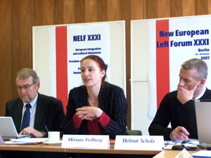 ![]() Głównymi tematami dyskusji była próba zdefinowania wspólnych wartości europejskiej lewicy, alternatywy dla neoliberalnej globalizacji i koordynacja działań europejskiej lewicy. W konferencji udział wzięli deputowani Bundestagu z ramienia Linkspartei.PDS: Ulla Lötzer (działająca także w niemieckim ATTAC), Jan Korte i wiceprzewodnicząca Bundestagu Petra Pau. Wiele uwagi poświęcono problemowi łamania praw człowieka na Białorusi. Uczestnicy forum przyjęli wspólną deklarację, w której domagają się zaprzestania represji wobec działaczy demokratycznej opozycji oraz uwolnienia przewodniczącego Białoruskiej Partii Socjaldemokratycznej "Hramada" Aleksandra Kazulina. Delegaci z Polski podkreślali, że przemiany na Białorusi mogą przybrać postać podobną do innych, neoliberalnych przeobrażeń w Europie Środkowo-Wschodniej, na co europejski ruch socjalistyczny powinien zwrócić uwagę i aktywniej wspierać białoruską lewicę. Ważnym tematem był problem obecności Turcji w Unii Europejskiej. Uczestnicy NELF zgodnie opowiedzieli się za integracją z Turcją pod warunkiem rozwiązania problemów Cypru i mniejszości kurdyjskiej oraz zagwarantowania przestrzegania praw człowieka w tym kraju. Omawiano także wspólny udział w najbliższym antyszczycie, który ma odbyć się w Niemczech. Następne spotkanie NELF odbędzie się za pół roku w Finlandii. |