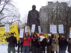 ![]() Protestujący skandowali m.in. "Roman Giertych musi odejść - Roman Dmowski musi runąć", "Brunatne mundurki precz ze szkoły" i "Faszystowskie matoły przecz ze szkoły". Manifestanci podkreślali, że Roman Giertych jest najgorszym ministrem edukacji od 1989 roku. Zarzucali mu, że nie odciął się publicznie od niedawnej publikacji swego ojca eurodeputowanego Macieja Giertycha, krytykowali także założenia rządowego projektu "Zero tolerancji dla przemocy w szkole". |