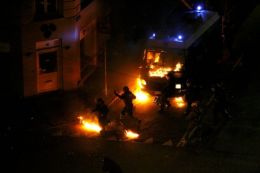 ![]() Zamieszki rozpoczęły się po zakończeniu wczoraj wieczorem pokojowej demonstracji zorganizowanej przez grupy lewicowe i anarchistyczne. Po zakończeniu przemówien, gdy wielu zebranych zaczęło się rozchodzić do domów ze strony policji w kierunku tłumu poleciały granaty z gazem łzawiącym. Kordon policji zaatakował jednocześnie demonstrantów, co sprowokowało całonocne starcia. Protestujący walczyli przy pomocy kamieni i koktajli mołotowa. Udało im sie spalić kilka radiowozów. W mieście powstały barykady, z których demonstranci odpierali ataki policji. Na dzisiejszy wieczór planowane są kolejne protesty. Władze wprowadziły na terenie Kopenhagi stan wyjątkowy. Do miasta są ściągane większe siły policji. Strona Ungdomshuset: www.ungeren.dk. |