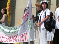 ![]() We Wrocławiu kilkadziesiąt osób protestowało przed Dolnośląskim Urzędem Wojewódzkim. Organizatorami manifestacji był Wolny Związek Zawodowy "Sierpień 80" i Polska Partia Pracy, wzięły w nim udział także działaczki Ogólnopolskiego Związku Zawodowego Pielęgniarek i Położnych. Pikietujący mieli ze sobą flagi oraz transparenty z napisami: "Dość wyzysku", "Kto się boi pielęgniarek", "Jesteśmy z Wami pielęgniarkami". Podczas manifestacji odczytano oświadczenie WZZ "Sierpień 80". W Katowicach protest zorganizował Ogólnopolski Związek Zawodowy Lekarzy przy współpracy z Ogólnopolskim Związkiem Zawodowym Pielęgniarek i Położnych oraz Związkiem Zawodowym Anestezjologów. Do demonstracji, która odbyła się pod Śląskim Urzędem Wojewódzkim dołączył Wolny Związek Zawodowy "Sierpień 80". Uczestniczyło w nim blisko 500 osób. Pod Urzędem Województwa Małopolskiego protestowało około 700 osób. Obok działaczy związków zawodowych pracowników służby zdrowia w demonstracji uczestniczył Wolny Związek Zawodowy "Sierpień 80". Manifestanci wręczyli wojewodzie petycję ze swoimi postulatami. |
