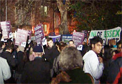 ![]() Powodem opóźniania były protesty środowisk antyfaszystowskich, w tym 500-osobowa blokada wejścia do budynku, w którym miała odbywać się debata. Kilku demonstrantów przedostało się do sali i próbowało ją zakłócić. Jeden z uczestników protestu, Martin McLuskey ze Związku Studentów Uniwersytetu Oksfordzkiego powiedział, że to, co robimy dziś w Unii Oksfordzkiej, to dajemy im (Griffinowi i Irvingowi - przyp. KK) platformę, która będzie ich legitymować i uwiarygodniać. To tak jakby powiedzieć: zgadzamy się z tym co mówicie i uznajemy to za coś poprawnego. Do protestu włączył się na swój sposób poseł prawicowej Partii Konserwatywnej Julian Lewis, rezygnując z dożywotniego członkostwa w Unii Oksfordzkiej i określając Griffina i Irvinga mianem "pary łajdaków". BNP jest partią wrogą emigrantom, często oskarżaną o sympatie hitlerowskie i rasizm. David Irving odsiedział w 2006 roku prawie rok w austriackim więzieniu, po tym jak tamtejszy sąd skazał go za głoszenie kłamstwa oświęcimskiego. |