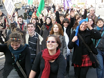 Działaczki nieformalnego Porozumienia Kobiet 8 Marca przemawiały z platformy na tematy związane ze Świętem Kobiet. Przypomniano jego historię, sięgającą końca XIX wieku, a także odniesiono się do otaczającej rzeczywistości. Przedstawicielki Wolnego Związku Zawodowego "Sierpnia 80" z Tesco i szpitali piętnowały obecną antyspołeczną, liberalną politykę rządu Donalda Tuska.