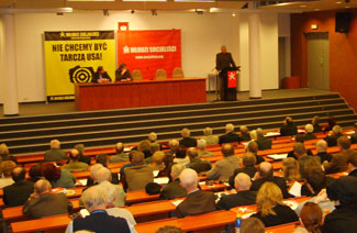 ![]() W konferencji wzięli udział paneliści z Uniwersytetu Gdańskiego, PPS, RACJI PL, Młodych Socjalistów i Zielonych 2004, a także niemieckiej partii Lewica (Die Linke) oraz Niemieckiego Forum Społecznego. Podczas pierwszej części konferencji pod hasłem "Naukowcy wobec tarczy" prof. Andrzej Sylwestrzak z Wydziału Prawa i Administracji UG powiedział m.in., że jest absolutnie przekonany że tarcza jest wbrew Konstytucji, ponieważ Konstytucja zobowiązuje rząd Polski do prowadzenia polityki pokojowej, nazwał też plany plany jej budowy prowokacją wymierzoną w Rosję. Nawet gdyby doszło do zawarcia z USA traktatu o budowie tarczy, to pozostaje kwestia ratyfikacji, czyli według konstytucji: drogą parlamentarną lub poprzez referendum - mówił Sylwestrzak. Helmut Scholz, sekretarz ds. międzynarodowych Die Linke, powiedział, że jego partia nie chce budowy elementów tarczy w żadnym państwie europejskim. Hannelore Tolke z niemieckiej Partii Lewicy namawiała do budowania sieci antymilitarnych w Europie. Dariusz Szwed z Zielonych 2004 wyraził z kolei pogląd, że budowa bezpieczeństwa powinna się opierać na walce o globalną sprawiedliwość i zrównoważony rozwój, a nie budowie infrastruktury militarnej. Grzegorz Ilnicki, Sekretarz Krajowy MS i jeden z organizatorów imprezy powiedział wprost, że jego organizacji zależy na zablokowaniu projektu budowy tarczy. Konsternację wśród organizatorów konferencji wzbudziła posłanka SLD Joanna Senyszyn, która w jej trakcie poprosiła o możliwość zajęcia miejsca obok panelistów mimo to, że nie otrzymała wcześniej zaproszenia. Organizatorzy nie przyjęli tej prośby, posłanka zaczęła więc udzielać wywiadów poza aulą, a po przeniesieniu się mediów na rozpoczynają się konferencję opuściła budynek biblioteki. |
