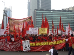 ![]() Białoruś W Mińsku odbył się wiec prorządowych związków zawodowych. Podczas manifestacji ponad 100 działaczy kampanii "Europejska Białoruś" zjawiło wyjęło flagi Unii Europejskiej. Zatrzymano 30 osób, wśród nich liderów opozycyjnego "Młodego Frontu" Źmiciera Daszkiewicza i Artura Finkiewicza oraz przywódcę Białoruskiej Partii Socjaldemokratycznej Mikoła Statkiewicza. Boliwia Z okazji 1 Maja prezydent kraju Evo Morales ogłosił plany nacjonalizacji firm Chaco (filia British Petroleum), Transredes (filia holenderskiego Shella) oraz CLHB (spółka niemiecko-peruwiańska). Bułgaria W stolicy kraju, Sofii, odbyła się demonstracja zorganizowana przez Bułgarską Partię Socjalistyczną. Około 3 tysiące osób zebrało się na centralnym placu miasta. Podczas wiecu przemawiał premier Sergiej Staniszew który powiedział zebranym, że do końca swej kadencji rząd skoncentruje się na podniesieniu standardu życia obywateli, poprawie systemu ochrony zdrowia i zagwarantowaniu bezpieczniejszych warunków pracy. Czechy Blisko 2 tysiące członków i sympatyków Komunistycznej Partii Czech i Moraw uczestniczyło w manifestacji w Pradze. Podczas protestu skupiono się na sprawie instalacji na terytorium Czech amerykańskiego radaru będącego częścią systemu tarczy antyrakietowej. Własne pochody zorganizowali także młodzieżówka socjaldemokratyczna, anarchiści i skrajna prawica. Filipiny Tysiące osób uczestniczyły w demonstracji w stolicy kraju, Manili. Domagali się podwyższenia płacy minimalnej i dymisjki prezydent Glorii Macapagal-Arroyo. Francja W całym kraju odbyło się 150 pochodów, zorganizowanych najczęściej przez związki zawodowe. W paryskim pochodzie uczestniczyli przywódcy najważniejszych organizacji pracowniczych oprócz związku Force Ouvrière, który urządził osobną manifestację. Demonstrowano głównie przeciwko rządowym planom przedłużenia okresu pracy niezbędnego do uzyskania pełnej emerytury oraz wzrostom cen. Własny protest zorganizował skrajnie prawicowy Front Narodowy, który obchodzi tego dnia święto swojej patronki Joanny d’Arc. Grecja Manifestacje miały miejsce m.in. w Atenach, Pireusie i Salonikach. Organizatorem akcji była Powszechna Konfederacja Pracujących Grecji. Protestowano przeciwko prywatyzacji i reformie emerytalnej. W stolicy kraju doszło do starć działaczy radykalnej lewicy z policją. Indie Działacze Komunistycznej Partii Indii (Marksistowskiej) rozpoczęli 1 maja ogólnokrajowy protest przeciwko wzrostowi cen ryżu. Przez blisko 2 tygodnie ma odbyć się około 100 manifestacji. Korea Południowa W demonstracji w stolicy kraju, Seulu, uczestniczyło tysiące osób. Protestowali oni przeciwko podpisaniu umowy o wolnym handlu z USA i liberalnej polityce gospodarczej prezydenta Lee Myung-Baka. Kuba W Hawanie odbyła się defilada zorganizowana przez Komunistyczną Partię Kuby i Centralę Pracujących Kuby. Przewodniczył jej nowy prezydent kraju Raúl Castro. Niemcy Około 3 tysięcy osób manifestowało w Norymberdze na południu Niemiec przeciwko marszowi neonazistowskiej Narodowo-Demokratycznej Partii Niemiec (NPD), w którym uczestniczyło około tysiąc osób. Skrajna prawica zorganizowała również marsz w Hamburgu. Centralne obchody 1 Maja odbyły się w Moguncji. Podczas swojego przemówienia przewodniczący Federacji Niemieckich Związków Zawodowych Michael Sommer zaapelował do polityków i przedsiębiorstw o dążenie do pełnego zatrudnienia oraz o wprowadzenie regulowanych cen energii. Rosja Blisko 12 tysięcy osób wzięło udział w pochodzie 1-majowym zorganizowanym w Moskwie przez Komunistyczną Partię Federacji Rosyjskiej. Protestowano też przeciwko polityce społeczno-gospodarczej prezydenta Władimira Putina i jego rządu. Pochód zorganizowała także prokremlowska Jedna Rosja wspólnie z Federacją Niezależnych Związków Zawodowych Rosji. Brało w nim udział blisko 20 tysięcy osób. Swoje manifestacje pierwszomajowe przeprowadziły też inne partie polityczne, w tym liberalne Jabłoko, prokremlowska lewicowa partia Sprawiedliwa Rosja oraz nacjonaliści z Ruchu Przeciwko Nielegalnej Imigracji i Sojuszu Słowiańskiego. Przeciwko wzrostom cen około 7 tysięcy osób protestowało w Czelabińsku. W wiecach i pochodach w całej Baszkirii wzięło udział około 30 tysięcy osób. Ich organizatorem była Federacja Związków Zawodowych Baszkirii. W Tambowie największą demonstrację zorganizowały tamtejsze związki zawodowe. Uczestniczyli w nim zarówno komuniści jak i działacze Jednej Rosji. Szwajcaria W Zurychu i Lozannie doszło do zamieszek mieli lewicowymi demonstrantami, a policją. W proteście w Zurychu uczestniczyło blisko 10 tysięcy osób. Zamieszki rozpoczęły się gdy grupa 250 osób zaczęła rzucać kamieniami i butelkami. Aresztowano 20 osób. Ukraina W stolicy kraju, Kijowie, miały miejsce wiece zorganizowane przez Komunistyczną Partię Ukrainy, Socjalistyczną Partię Ukrainy oraz anarchistów. W Symferopolu na ulice wyszło 15 tysięcy osób. Manifestanci sprzeciwiali się członkostwu Ukrainy w NATO. Podobne protesty odbyły się w Doniecku i Charkowie. We Lwowie demonstrowało około 100 osób. USA 25 tys. dokerów z 29 portów w USA przeprowadziło strajk przeciw wojnie w Iraku. Strajk zorganizował związek International Longshore and Warehouse Union (ILWU). Brali udział także pracownicy z Industrial Workers of the World. W tym samym czasie także kierowcy w niektórych miastach USA zastrajkowali przeciw wojnie. W Olympii, stolicy stanu Waszyngton, anarchiści weszli do budynku rządu, by domagać się respektowania praw pracowniczych. Próbowali również wejść do biura gubernatora. Turcja 505 osób zostało zatrzymanych w Stambule podczas manifestacji. W dzielincy Sisla gdzie mieści się siedziba Konfederacji Postępowych Robotniczych Związków Zawodowych Turcji doszło do starć z policją kiedy manifestanci próbowali udać