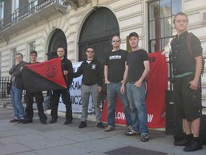 ![]() Aktywiści IWW rozdali setki ulotek i wręczyli petycję domagającą się przestrzegania praw pracowniczych. Jeden z transparentów głosił po polsku: "Poczta Polska łamie prawa pracownicze". To druga – po proteście przed ambasadą w Wilnie - tego typu akcja. Inicjatywa Pracownicza zapowiada dalsze protesty przed polskim placówkami dyplomatycznymi w całej Europie. 22 lipca Komisja Krajowa OZZ IP wystosowała do Dyrektora Generalnego Poczty Polskiej kolejne pismo domagające się podjęcia rozmów w sprawie Bartosza Kantorczyka. Skierowano także pozew do sądu pracy, domagający się przywrócenia Kantorczyka do pracy. |