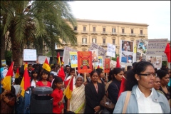 ![]() Manifestanci przemaszerowali od Piazza Politama to biura Ministerstwa Spraw Zagranicznych gdzie złożyli petycję w której wyrażają zaniepokojenie sytuacją Tamilów mieszkających na Sri Lance. Protestujący skandowali hasła przeciwko rządowi Sri Lanki i prezydentowi Mahindzie Rajapaksie. Na jednym z transparentów lankijski prezydent został przedstawiony jak zabójca niewinnych cywilów. Tamilowie oskarżają władzę Sri Lanki o blokadę ekonomiczną zamieszkanych przez nich terytoriów, odmowę dostarczania pomocy humanitarnej oraz wymuszenia, porwania, zabójstwa i zbrojne ataki wobec cywilów dokonywane przez elitarne jednostki lankijskiego wojska. Tamilowie to 74-milionowy naród z grupy ludów drawidyjskich zamieszkujący głównie indyjski stan Tamil Nadu i północno-wschodnią część Sri Lanki. Tamilowie lankijscy utworzyli zbrojną organizację lewicową Tygrysy-Wyzwoliciele Tamilskiego Ilamu która walczy zbrojnie z syngaleską większością o niepodległe państwo. |