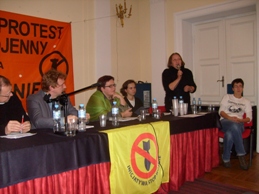 Jana Glivicka z czeskiej Inicjatywy "Nie Dla Baz" omówiła przebieg protestów w Czechach, gdzie odbyło się wiele lokalnych demonstracji i zebrano ponad 100 tysięcy podpisów przeciwko radarowi (czeska konstytucja nie umożliwia przeprowadzania referendów). Ben Folley z Kampanii na rzecz Rozbrojenia Nukleranego z Wielkiej Brytanii omówił protesty na Wyspach, gdzie także od pięciu lat powstają nowe amerykańskie instalacje. Piotr Ikonowicz (Nowa Lewica) mówił, że nie ma złudzeń, iż pod rządami nowego prezydenta USA wiele się zmieni, ponieważ Barack Obama miał wielu wpływowych sponsorów, między innymi związanych z lobby zbrojeniowym. Powiedział również, że należy kontynuować działania antywojenne.