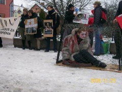 Przy Bibliotece działa też grupa prozwierzęca Vege Active, która organizuje różnorodne akcje. Pod koniec listopada w samym centrum miasta stanęło na przykład sześć nagrobków, znicze i klatki. W jednej z nich dziewczyna ubrana w futro poplamione krwią. Żeby zwrócić uwagę, ile zwierząt ginie, aby można było uszyć jedno futro.