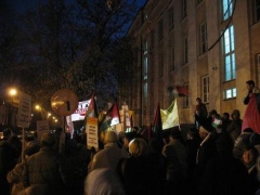 ![]() Manifestujący podkreślali jednak, że obecny atak izraelskiego lotnictwa to tylko wierzchołek góry lodowej tragedii Palestyńczyków, a Strefa Gazy jest miejscem katastrofy humanitarnej od prawie dwóch lat, od kiedy trwa izraelska blokada tego terytorium. Mimo iż protest zorganizowano z zaledwie jednodniowym wyprzedzeniem, zgromadził ponad 100 osób, głównie mieszkających w Polsce Palestyńczyków i zwykłych warszawiaków. Spośród organizacji politycznych obecne były Pracownicza Demokracja, Samoobrona RP i Unia Pracy. Wznoszono m.in. hasła: "Wolna Palestyna", "Barak – terrorysta", "Stop rzezi Strefy Gazy". Skandowano także hasła po arabsku. Jeżeli izraelski atak na Strefę Gazy będzie kontynuowany kolejna demonstracja solidarności z Palestyńczykami odbędzie się w niedzielę, 4 stycznia, o godz. 13.00 pod ambasadą Izraela (ul. Krzywickiego 24) w Warszawie. |