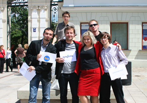 ![]() Happening przeprowadzony był w formie aukcji na której licytowano wydziały Uniwersytetu Warszawskiego, zorganizowanej i prowadzonej przez minister Barbarę Kudrycką. Aukcja miała być sposobem rządu PO na rozwiązanie problemów budżetowych. Pod młotek poszły między innymi Wydział Dziennikarstwa i Nauk Politycznych, kupiony za cenę wywoławczą w wysokości 1 zł przez przedstawiciela koncernu ITI, Instytut Ochrony Środowiska nabyty przez korporację Shell czy Wydział Nauk Ekonomicznych, zakupiony przez bank inwestycyjny Lehmann Brothers za 5 dolarów. Zainteresowaniem nie cieszył się natomiast Wydział Polonistyki – z braku ofert kupna minister Kudrycka zdecydowała o jego likwidacji. Jak później podkreślił w swoim wystąpieniu Grzegorz Ilnicki, Sekretarz Krajowy Młodych Socjalistów, nie może być zgody na kolejne pomysły rządu Platformy Obywatelskiej opierające się przede wszystkim na prywatyzowaniu kolejnych sfer życia, przede wszystkim edukacji i służby zdrowia. Przypomniał on również, że Barbara Kudrycka poza pełnieniem funkcji Ministra Nauki i Szkolnictwa Wyższego jest również prezydentem prywatnej uczelni wyższej. Demokratyczne Zrzeszenie Studenckie to inicjatywa studentów i studentek polskich uczelni, pragnących stworzenia organizacji, która potrafiłaby w zdecydowany sposób bronić praw i interesów środowiska akademickiego, w szczególności prawa do bezpłatnej edukacji wyższej. |