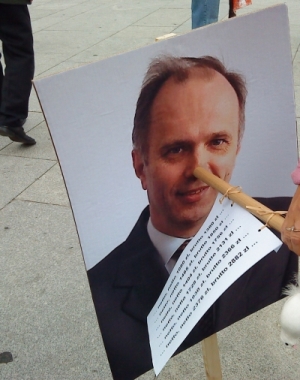 ![]() Lokatorzy zarzucili wiceprezydentowi dezinformowanie radnych podczas ostatniej sesji Rady Warszawy. Kwoty uprawniające do starania się o uzyskanie mieszkania komunalnego jakie podał miały zostać zawyżone nawet o kilkaset złotych, ponieważ uznał iż wielkość najniższej emerytury od jakiej mają być naliczane jest kwotą netto, a nie brutto. Lokatorzy uważają, że prezydent, którzy kilkakrotnie zarzucał im demagogię sam dopuścił się manipulacji, którą powinien wytłumaczyć. Protestujący przynieśli wizerunek Jakubiaka z nosem Pinokia i cytatami z jego wypowiedzi na sesji Rady. Wręczyli również definicje pojęć netto i brutto wraz z przygotowanymi analizami faktycznych minimów dochodowych wynikających z uchwały. Protestujemy dopiero teraz, pomimo iż od dnia rady upłynął dłuższy czas, gdyż dopiero niedawno uzyskaliśmy dostęp do oficjalnego stenogramu z wypowiedziami wiceprezydenta - powiedział Janusz Baranek z WSL. Wiceprezydent Jakubiak początkowo twierdził, że protestujący muszą wyjść, gdyż prowadzi prywatną rozmowę telefoniczną. Dopiero, gdy przypomniano mu, że godziny dyżurów nie są po to aby prowadzić prywatne rozmowy, podjął dyskusję. Prezydent obiecał odpowiedzieć na pismo organizacji lokatorskich w ciągu 30 dni. Jego zdaniem w kwestii minimów dochodowych liczy się to co jest napisane w uchwale. WSL i KOL stwierdziły, że jeśli potwierdzi się, że publicznie mówił nieprawdę będą się domagały jego dymisji. Proponują także podnieść kryteria dochodowe dla starających się o lokale komunalne do takiego poziomu o jakim mówił podczas sesji Rady Jakubiak. Organizacje lokatorskie skierowały pisma do przewodniczącej Rady oraz prezydent Warszawy informując o podejrzeniach iż Andrzej Jakubiak wprowadził Radę Miasta w błąd. Protest przebiegał spokojnie. Wezwana przez urzędników ochrona i straż miejska nie interweniowały. Nikt nie został zatrzymany ani nawet spisany. |