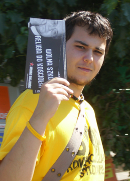 ![]() Uczniowie i uczennice mogą dowiedzieć się z nich między innymi o tym, że szkoła ma obowiązek zaakceptowania decyzji ucznia o nieuczęszczaniu na lekcje religii, ma również obowiązek zorganizowania lekcji etyki zamiast lekcji religii dla grupy co najmniej 7 uczniów. Zakładki informują również o tym, że uczniowie maja prawo do nieujawniania swojego wyznania (gwarantowane przez Art. 53 Konstytucji RP) oraz domagania się, by zajęcia lekcji religii odbywały się na pierwszej lub ostatniej godzinie lekcyjnej. W ocenie organizatorów wymienione prawa są obecnie notorycznie łamane. Akcja będzie kontynuowana w wielu miastach przez najbliższe dni, w sumie rozdanych zostanie kilkadziesiąt tysięcy materiałów informacyjnych. Projekt graficzny zakładki oraz listę miejscowości w których były one dziś rozdawane można znaleźć na stronie internetowej MS. Podniesiona przez Młodych Socjalistów kwestia obecności religii w szkole budziła duże zainteresowanie. Młodzież reagowała na ulotki pozytywnie, zaznaczali, że dotychczas nikt nie poruszał drażliwego tematu lekcji religii, a przede wszystkim, że w szkole nie mówi się o obowiązku wprowadzenia etyki, jeśli uczniowie zgłaszają taką potrzebę. Miłym zaskoczeniem było żywe zainteresowanie tym, kim są Młodzi Socjaliści i czym jeszcze się zajmują - tak przebieg akcji w Zgierzu relacjonuje Marta Wysocka z MS. Akcja Młodych Socjalistów jest jednocześnie apelem o wycofanie nauczania religii ze szkół. Według Jakuba Klimczaka, Sekretarza Krajowego MS wpisuje się ona w szerszy kontekst walki o świeckie państwo. Polska niestety nie jest państwem świeckim, jeden z kościołów jest ewidentnie faworyzowany przez prawo i administracje publiczną, dlatego Młodzi Socjaliści wśród swoich postulatów mają nie tylko wycofanie religii ze szkół, ale także wypowiedzenie konkordatu - stwierdził. |