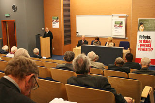 ![]() Tematem prelekcji oraz późniejszej dyskusji była przyszłość polskiego systemu szkolnictwa rozpatrywana pod wieloma aspektami. Głównym jednak nurtem wymiany zdań był problem odpowiedniego kształcenia oraz kształtowania kolejnych pokoleń pedagogów. Goście zaproszeni przez Klub starali się sprecyzować swoje plany i odnaleźć najlepsze tory dla polskiego systemu szkolnictwa. Jako pierwszy głos zabrał Franciszek Potulski, który nakreślił ogólny obraz systemu oświatowego. Podkreślił, że polska szkoła dość już ma radykalnych zmian. Obecne rozplanowanie lat edukacji na szkoły podstawowe, gimnazja i szkoły średnie nie jest jego zdaniem idealne, ale nie należy już niczego zmieniać. Prelegentów pytano m.in. o zajęcia z języka kaszubskiego, które odbywają się w wielu szkołach na Pomorzu. Wątpliwości dyskutantów budził m.in. sposób kontroli tego nauczania, dotąd realizowany przez związane z Platformą Obywatelską Zrzeszenie Kaszubsko-Pomorskie" Elżbieta Markowska z kolei uspokajała dyskutantów, że problem likwidacji małych szkół na Pomorzu nie jest aż tak wielkim problemem jak w innych regionach kraju i przedstawiła problemy działalności Związku Nauczycielstwa Polskiego, skupiając się na relacjach z władzami samorządowymi. Jej zdaniem, dużemu związkowi zawodowemu, jakim jest ZNP udaje się interweniować skutecznie w sprawie likwidowanych placówek oświatowych w małych miejscowościach. Markowska mówiła, że ZNP broni zachowania funkcji kulturalnej nawet tych obiektów, które likwidowane, można przekształcać w biblioteki publiczne. Grzegorz Ilnicki z Polskiej Partii Socjalistycznej poruszył kwestię wiejskich placówek edukacyjnych oraz neoliberalnej polityki prywatyzacji szkół i przedszkoli. W swoim wystąpieniu wskazał, że samorządy kierują się zbyt często myśleniem kategoriami ekonomicznymi, nie doceniając roli małych placówek oświatowych, które wyrównują dostęp do wiedzy i zmniejszają dystans edukacyjny pomiędzy miastem i wsią. Ilnicki krytykował także postulaty minister Katarzyny Hall finansowania ze środków budżetowych szkolnictwa prywatnego. Posłanka Jaruga-Nowacka wspomniała o głośnej ostatnimi czasy sprawie krzyży w polskich budynkach użyteczności publicznej, w tym także w szkołach jako miejscach z założenia niezależnych światopoglądowo. Znaczący w dyskusji okazał się wyrok Strasburskiego Trybunału Praw Człowieka, większości obecnych na sali dobrze znany. Spotkanie ma być wstępem do szerszej dyskusji o problemach edukacji na Pomorzu. Alicja Szczypta |