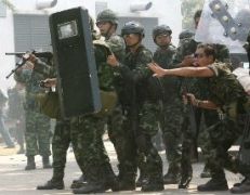 ![]() W nocy wojsko starło się z demonstrantami blokującymi jedną z głównych ulic miasta, prowadzących do ufortyfikowanego obozu wzniesionego przez zwolenników opozycji. Prawdopodobnie obie strony użyły broni palnej. Podczas udzielania wywiadu poważnie raniony przez snajpera został generał Seh Daeng będący wojskowym doradcą opozycji. Atak wojska wiąże się z ultimatum jakie władze dały opozycji, a dotyczącym opuszczenia ufortyfikowanego obozu i zniesienia blokad głównych ulic. W trwających w Bangkoku starciach zginęła co najmniej jedna osoba. Tysiące protestujących od dwóch miesięcy blokują centrum miasta domagając się rozpisania nowych wyborów. Część z nich to zwolennicy Thaksina Shinawatry byłego premiera rządu obalonego w wyniku wojskowego zamachu stanu w roku 2006. We wcześniejszych walkach po obu stronach zginęło 30 osób, a co najmniej 1400 zostało rannych. |