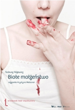![]() Rzeczywistość przedstawiona w "Białym małżeństwie" jest podwójna, właściwie wielokrotnie podwójna. Pod cienką powłoką społecznych norm i zasad dobrego wychowania kryją się mroczne marzenia i nieopanowane żądze. Sentyment i przywiązanie dziadka do wnuczek skrywa seksualne zainteresowanie dojrzewającymi dziewczętami. Pustka małżeńskiego stadła ucieleśniona w porcelanowej zastawie bywa zapełniana przez egzaltowaną poezję, która nie potrzebuje szkolnego sztambucha. Wiejska sielanka z dostatnim stołem i piękną przyrodą jest areną dla seksualnego molestowania. Kościelne wnętrze mieści rozbuchaną zmysłowość . Wymyślne stroje kryją zupełną nagość, co zresztą zostało w sposób dosłowny wykorzystane w kilku scenach. Ich symbolika oddaje tę dwuwarstwowość: spod narzuconych społecznych rygorów zadziwiająco łatwo wyłaniają się ciała. W końcowych scenach nowożeńcy eksponują je jednak niepotrzebnie. Ich ciała nie spotykają się. Nadaremnie epatują sobą partnerów w ślubnych strojach. Panna młoda chce się poświęcić dla lubego, ale nie chce uprawiać z nim seksu. Nawet gdy stoi przed nim zupełnie rozebrana, chce być mężowi tylko bratem. Dlaczego? Z pomocą, jak to już nieraz bywało, przychodzi święty Mikołaj. Kluczem do zrozumienia koloru tytułowego małżeństwa jest pewne zdarzenie opowiedziane przez Biankę (Katarzyna Bednarz) Paulinie (Katarzyna Z. Michalska). Wszystko wskazuje na to, że wizyta mężczyzny, którą dziewczynka zapamiętała jako złożoną przez św. Mikołaja, była raczej wyprawą Dziadka (lub innego mężczyzny) po seksualny łup. Późniejsze kupowanie za prezenty przesiąkniętych dziewczęcą wonią części garderoby (Dziadek wymienia czekoladki na pończoszki i majtki) każe przypuszczać, że to właśnie najstarszy obecny w opowieści członek rodu molestował nieświadome znaczenia sytuacji dziecko. W tym kontekście późniejsza niechęć Bianki do seksu, także małżeńskiego, wydaje się zrozumiała. Odrzucenie wynikającej z biologii tożsamości płciowej, brak akceptacji własnej rodzącej się seksualności i domaganie się przez dziewczynę - notabene przy symbolizującym boski majestat konfesjonale - męskiego członka, także może stanowić echo tamtej traumy. Jednak wątek pedofilii, realizowanej w bezpiecznym dla dewianta środowisku rodzinnym, wybija się na pierwszy plan sztuki, to nie na nim kończy się jej społeczna drapieżność. Mężczyźni w dramacie Różewicza traktują kobiety instrumentalnie, a te zazwyczaj pokornie się z tym godzą. Matka (Elżbieta Golińska) została wydana za mąż wbrew swojej woli, a konieczność współżycia sprawiła, że letnie uczucia do męża zamieniły się w awersję. Kucharcia (Anna Błaut) jest wykorzystywana seksualnie przez Ojca (Jerzy Senator), swojego chlebodawcę, nawet podczas gotowania, za co przynajmniej przy jednej okazji otrzymuje dodatkowe wynagrodzenie (monetę jak seks jednaką z obu stron). Dowiadujemy się zresztą, że nie tylko z nią pan domu realizuje swoje erotyczne pragnienia. W sztuce pojawia się często jako byk, a w symbolicznej scenie jego córka Bianka pokonuje go niczym w trakcie corridy. Takich symbolicznych obrazów jest zresztą w realizacji Krystyny Meissner znacznie więcej. Całość rozgrywa się niejako w obszernym wnętrzu kościoła: po bokach stoi skrzydlaty anioł i murzynek z tacą na datki, na środku zaś pusty konfesjonał, na najdalszym planie - charakterystyczne dla świątyń okno. Od czasu do czasu pojawia się naturalna lesistość, ta jednak nie jest niezbędna półnagim, niekiedy zaś całkiem nagim nimfom, które pląsają po wodzie, ale też oblepiają konfesjonał, a innym razem przyszłego pana młodego, wijąc się w kuszącym tańcu. Konfesjonał nie mieści żadnego przedstawiciela Boga, podobnie jak miejsce przeznaczone do aktywności duchowej i religijnych obrzędów, które służy celom ewidentnie cielesnym. Instytucje roszczące sobie prawo do forsowania surowych norm obyczajowych - zdaje się mówić twórczyni spektaklu - są tylko pustą atrapą. Nie niosą ze sobą istotnego etycznego przesłania, bo życie jest gdzie indziej, nie w religijnych idiosynkrazjach, lecz w nieodpartej fizjologii i stosunkach społecznych opartych na męskiej dominacji. Tekst Różewicza nie jest jednak tylko krytyką międzyludzkich relacji, wynikających z systemu społecznego sprzyjającego jednej z płci. Mężczyźni deklamujący sobie, oczywiście pod nieobecność kobiet, sprośne wierszyki, czyhający tylko, żeby skorzystać z przychylności (radośnie pogodzonej) służącej, epatujący swoim rozbuchanym ego (a niekiedy id) młode kobiety - to wszystko z pewnością nie jest obraz intelektualistów i przedsiębiorców, zaangażowanych w czynienie świata lepszym. Na oskarżeniu mężczyzn o egoistyczny hedonizm sprawa się wszakże nie kończy. Także kobiety przedstawione zostały w niezbyt korzystnym świetle, co ściągnęło na Różewicza oskarżenia o mizoginizm. Kobiety zostały jednak przynajmniej pokazane w bardziej zróżnicowany sposób. Pensjonarska naiwność obu sióstr (świetne role obu Katarzyn!), zawiść Pauliny o Beniamina (Piotr Łukaszczyk), skłonność do popadania w egzaltację przez Matkę, przewyższająca nawet nastoletnie uniesienia poetyckie córki, wyuzdanie Ciotki (Ewelina Paszke-Lowitzsch), nie przywiązywanie wagi do godności osobistej przez Kucharcię - to wszystko rzeczywiście daje obraz niezbyt dojrzałych kobiet. Jednak na tle mężczyzn wypadają i tak lepiej. Są bardziej samoświadome i refleksyjne. To przecież jedna z nich dokonała transgresji w świecie zdominowanym przez męską seksualność i doprowadziła do aseksualnego małżeństwa. Na podstawie powyższych relacji wydawać by się mogło, że mamy do czynienia ze spektaklem ponurym i tragicznym. Nic podobnego! Niemal przez cały czas było bardzo przewrotnie i