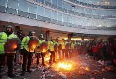 ![]() Demonstracja zorganizowana została przez Narodowy Związek Studentów (National Union of Students, NUS) oraz Związek Uniwersytetów i Szkół Pomaturalnych (University adn College Union, UCU). Rozpoczęła się pokojowo z udziałem do 50 tysięcy studentów, wykładowców i osób ich popierających, marszem od Whitehall (przy której skupione są budynki rządowe), wzdłuż Downing Street (gdzie znajdują się siedziby premiera i ministra finansów) i budynków Parlamentu. Jednak po godzinie, gdy miała się zakończyć pokojowym wiecem, w Milbank Tower w pobliżu muzeum sztuki Tate Britain, doszło do gwałtownych zajść. Setki pracowników ewakuowano z budynku, w którym oprócz głównej siedziby Partii Konserwatywnej mieszczą się biura innych organizacji, w tym agencji rządowych, gdy wybito okna i rozniecono ogień. Około 50 demonstrantów dostało się na dach, z którego zrzucali wielkie metalowe gaśnice na policjantów z jednostek specjalnych. Lali także wodę z węży strażackich i rzucali jajka. W tym czasie na dole około tysięczny tłum rzucał w policjantów kijami i innymi przedmiotami. Palono transparenty, a demonstranci wewnątrz budynku za pomocą krzeseł torowali sobie drogę przez szklaną ścianę na dziedziniec. Jak donosi independent.co.uk, jedna z policjantek została ranna w głowę. Dezaprobatę wobec licznie obecnych policjantów wyrażano za pomocą głośnego wycia, krzyku i skandowania (m.in. "Tory scum!" - toryskie szumowiny). Rzecznik prasowy Partii Konserwatywnej stwierdził, że cały personel partii jest bezpieczny, choć nie potwierdził, czy został ewakuowany z budynku. Później okazało się, że urzędnicy partyjni pozostali w swoich biurach. Prezes NUS Aaron Poren powiedział, że niewielka mniejszość demonstrantów uprowadziła marsz, opisując przemoc jako godną potępienia. Powiedział, że nie była ona planowana przez organizatorów. Także sekretarka generalna UCU Sally Hunt określiła działania mniejszości jako godne pożałowania i stwierdziła, że przeważająca większość personelu i studentów na marszu przyszła po to, żeby wysłać jasne i pokojowe przesłanie politykom. Demonstranci w budynku siedziby głównej torysów i na jej dachu wydali oświadczenie, w którym powiedzieli: Sprzeciwiamy się wszystkim cięciom i pozostajemy solidarni z pracownikami sektora publicznego oraz z wszystkimi biednymi, niepełnosprawnymi, starszymi i pracującymi ludźmi. Okupujemy dach w sprzeciwie wobec urynkowieniu edukacji, forsowanej przez koalicję rządową, i forsowanemu przez nią systemowi pomocy bogatym i atakowania biednych. Wzywamy do bezpośredniego działania, by przeciwstawić się tym cięciom. To jest dopiero początek oporu wobec niszczeniu naszego systemu edukacji i służb publicznych. Policja w rynsztunku do walki z zamieszkami w liczbie ok. 50 funkcjonariuszy próbowała ok. 17.25 czasu polskiego usunąć demonstrantów z budynku. Doszło do przepychanek, w wyniku których tylko część dziedzińca została zajęta przez mundurowych. Dopiero po 18-ej naszego czasu większość demonstrantów zaczęła opuszczać miejsce wypadków. Ponad 200 policjantów pozostało jednak w pełnej gotowości. Wypychani przez składający się z nich kordon studenci krzyczeli "No ifs, no buts, no education cuts" ("Żadnych jeśli, żadnych ale, w edukacji cięć nie chcemy wcale"). |
