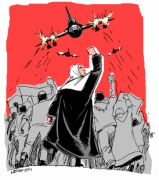 ![]() Izrael dokonał wówczas 22-dniowej inwazji na rządzoną przez Hamas Strefę Gazy, zabijając jedną tysięczną jej półtoramilionowej ludności i dokonując olbrzymich zniszczeń infrastrukturalnych. Spotkał się przy tym z podobnymi powszechnymi oskarżeniami o stosowanie nieproporcjonalnej siły, z jakimi mierzy się dziś libijski przywódca. Kaddafi wypowiedział się w ten sposób broniąc działań sił rządowych. Jego zdaniem, zostały one zmuszone do zdecydowanej odpowiedzi na wrogie działania zbrojne: nawet Izraelczycy, gdy wkroczyli do Strefy Gazy, wykorzystali czołgi do walki z takimi ekstremistami. Dodał: To samo dzieje się tutaj! Mamy do czynienia z małymi grupami zbrojnymi, które walczą przeciwko nam. Na początku nie stosowaliśmy siły. [...] Zbrojne oddziały armii libijskiej zostały zmuszone walczyć z małymi zbrojnymi bandami Al-Kaidy. Oto co się stało. Kaddafi utrzymywał też, że w trakcie walk zginęło od 150 do 200 osób. Jego zdaniem nie zaszkodziły też one międzynarodowej pozycji Libii, która cieszy się bardzo dobrymi stosunkami ze Stanami Zjednoczonymi, Unią Europejską i krajami afrykańskimi. Libia ma jego zdaniem odgrywać kluczową rolę w zapewnianiu pokoju w regionie i na świecie. Wspomniał też o powstrzymywaniu przez Libię nielegalnej imigracji z Afryki Subsaharyjskiej do Europy. W dwudziestominutowym wystąpieniu w libijskiej telewizji państwowej 22 lutego Kaddafi porównał z kolei działania sił prorządowych do działań Amerykanów w Iraku i Afganistanie: To nie kwestia władzy, lecz międzynarodowych powiązań terrorystycznych, które rozprzestrzeniają się na całym świecie. Słyszeliście o Falludży w Iraku, o Zarkawim, Amerykanie zrównali tam z ziemią cały rejon. Także Saddam Husajn był oskarżany o związki z Al-Kaidą. W Afganistanie jest obecnie taka sytuacja - to wszystko przez Bin Ladena. Nie tylko Amerykanie, lecz również siły NATO bombardują Afganistan i Pakistan dzień i nocą, tak samo jak Irak. Dlaczego? Bo walczą z Al-Kaidą, walczą z terroryzmem. W przemówieniu tym, dzięki któremu Kaddafi zasłynął swym oskarżeniem przeciwników o masowe stosowanie środków odurzających, stwierdził on również, że to właśnie Al-Kaida w pełni odpowiada za dramatyczną sytuację w Libii. Oskarżył też Zachód o pozostawienie tego kraju własnemu losowi, choć pozostawał on jego sojusznikiem w tzw. wojnie z terroryzmem. |
