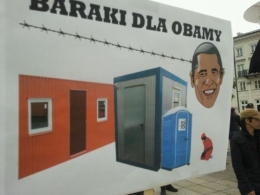 ![]() Przed Pałacem Prezydenckim stanął "Barak dla Obamy" symbolizujący, że gdy władza się bawi i wydaje publiczne pieniądze władze Warszawy tłumaczą że nie mają pieniędzy na kwestie takie jak polityka mieszkaniowa. Gdy kolumna samochodów z Obamą przejeżdżała przed Pałacem Prezydenckim demonstranci wygwizdali jadące w niej osoby. Cały czas grała również grupa samby. Główne protesty mają się odbyć 28 maja o godzinie 12.00 na Placu Trzech Krzyży w Warszawie. Foto: www.cia.media.pl. |