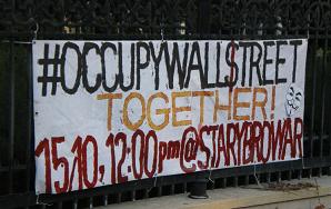 ![]() Demonstracja zgromadziła kilkadziesiąt osób które, w rytmach samby, skandowały hasła: "Nie zaciskaj pasa - zaciśnij pięść!", "Nie będziemy płacić za wasz kryzys", "Nie stać nas na polityków" itp. Z racji chłodnej pogody uczestników poczęstowano gorącą herbatą. Przechodniom rozdano kilkaset ulotek Ogólnopolskiego Związku Zawodowego Inicjatywa Pracownicza. Podobne akcje miały dzisiaj miejsce w dziewięciuset pięćdziesięciu miastach na całym świecie. Foto: Transparent informujący o pikiecie przy Alei Niepodległości. |